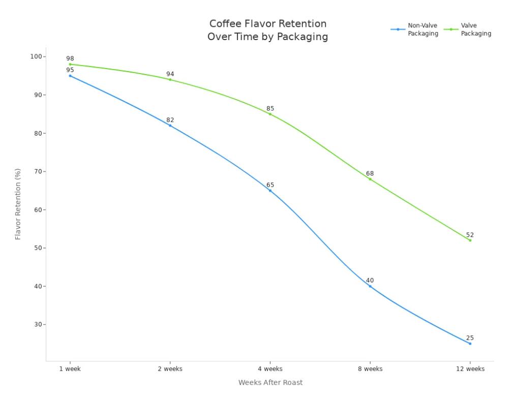 تؤثر التعبئة والتغليف بشكل مباشر على مدة احتفاظ قهوتك بنكهتها المميزة. تحافظ الأكياس المزودة بصمامات تهوية على نضارة القهوة لفترة أطول. يمكنك ملاحظة الفرق في ثبات النكهة مع مرور الوقت.