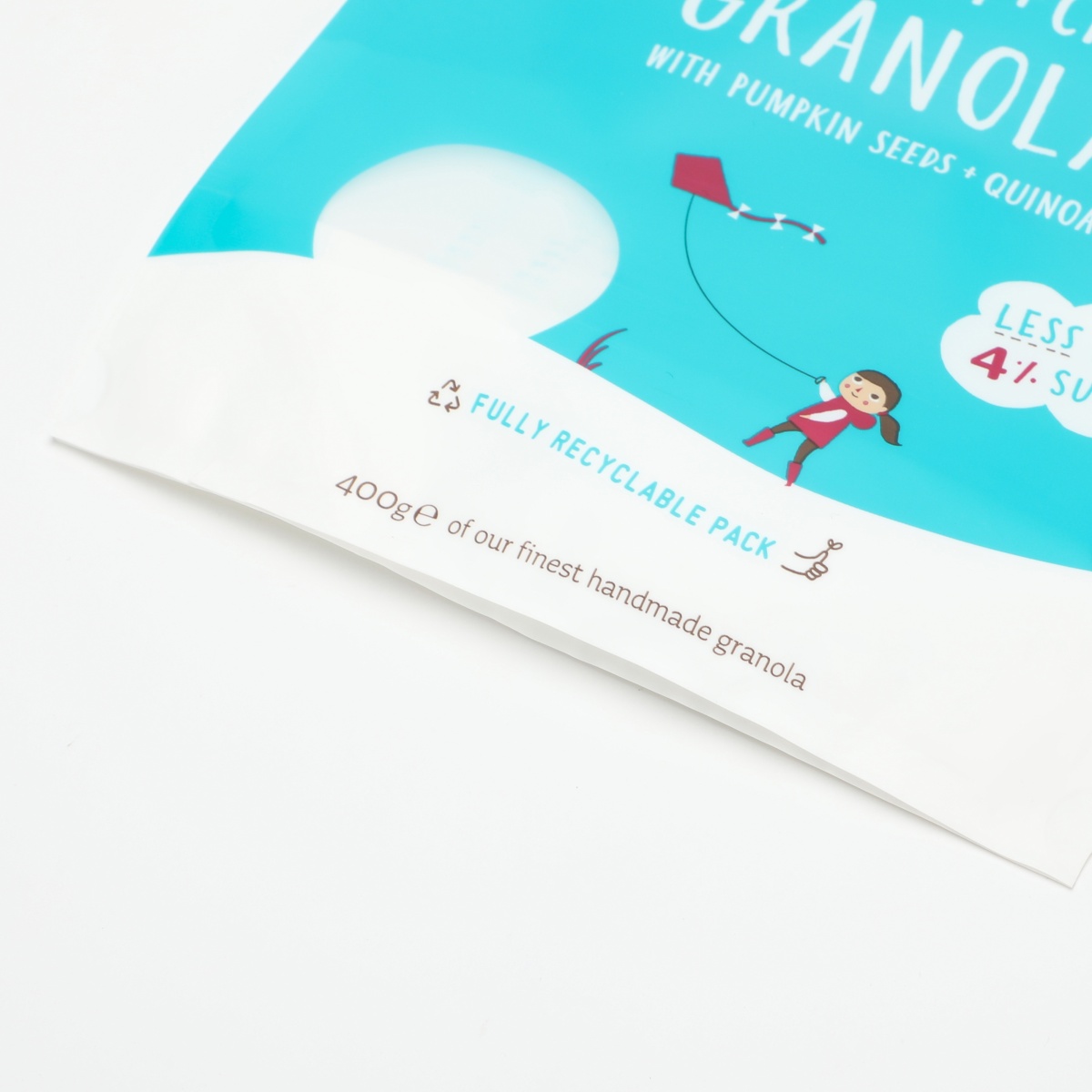 أكياس قابلة للوقوف مصنوعة من مواد معاد تدويرها صديقة للبيئة للشوفان والجرانولا