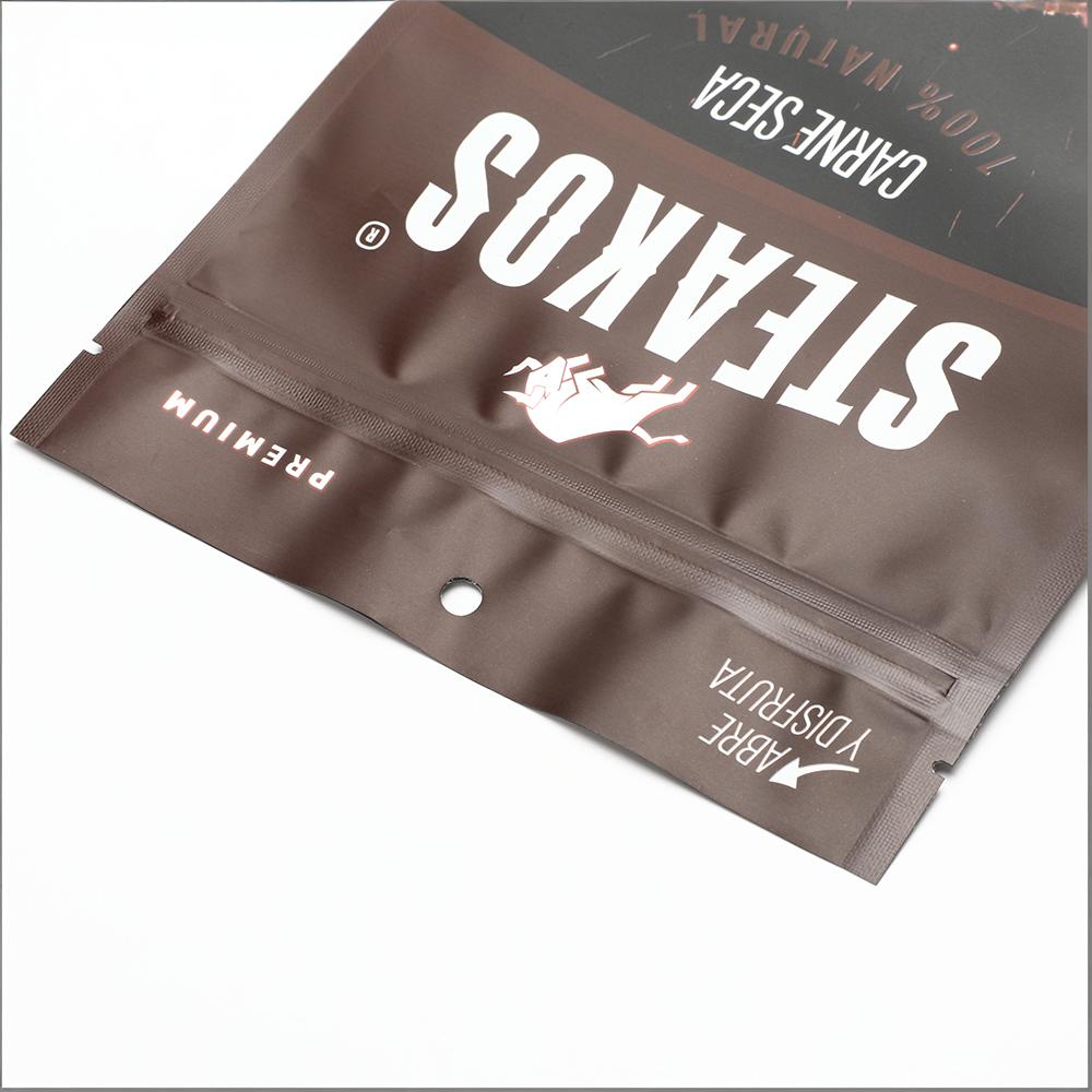 صُممت هذه الكيس القائم خصيصًا لتعبئة لحم البقر المجفف ومنتجات اللحوم المجففة الأخرى. مصنوعة من مواد مغلفة عالية الجودة، فهي تحمي المنتج بفعالية من الرطوبة والأكسجين والضوء للحفاظ على نضارته ونكهته لفترة صلاحية أطول، وهي معتمدة للاستخدام مع الأغذية.